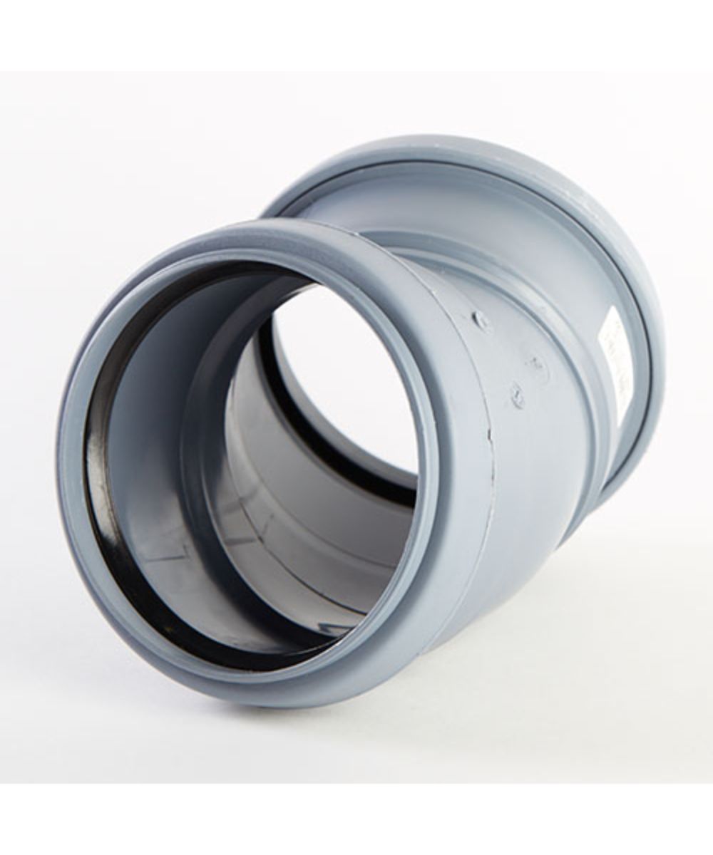 Viemärin muhvikulma. Viemäriputkien osat valmistetaan eurooppalaisten standardien EN 1451-1 ja EN 1852-1 mukaisesti
