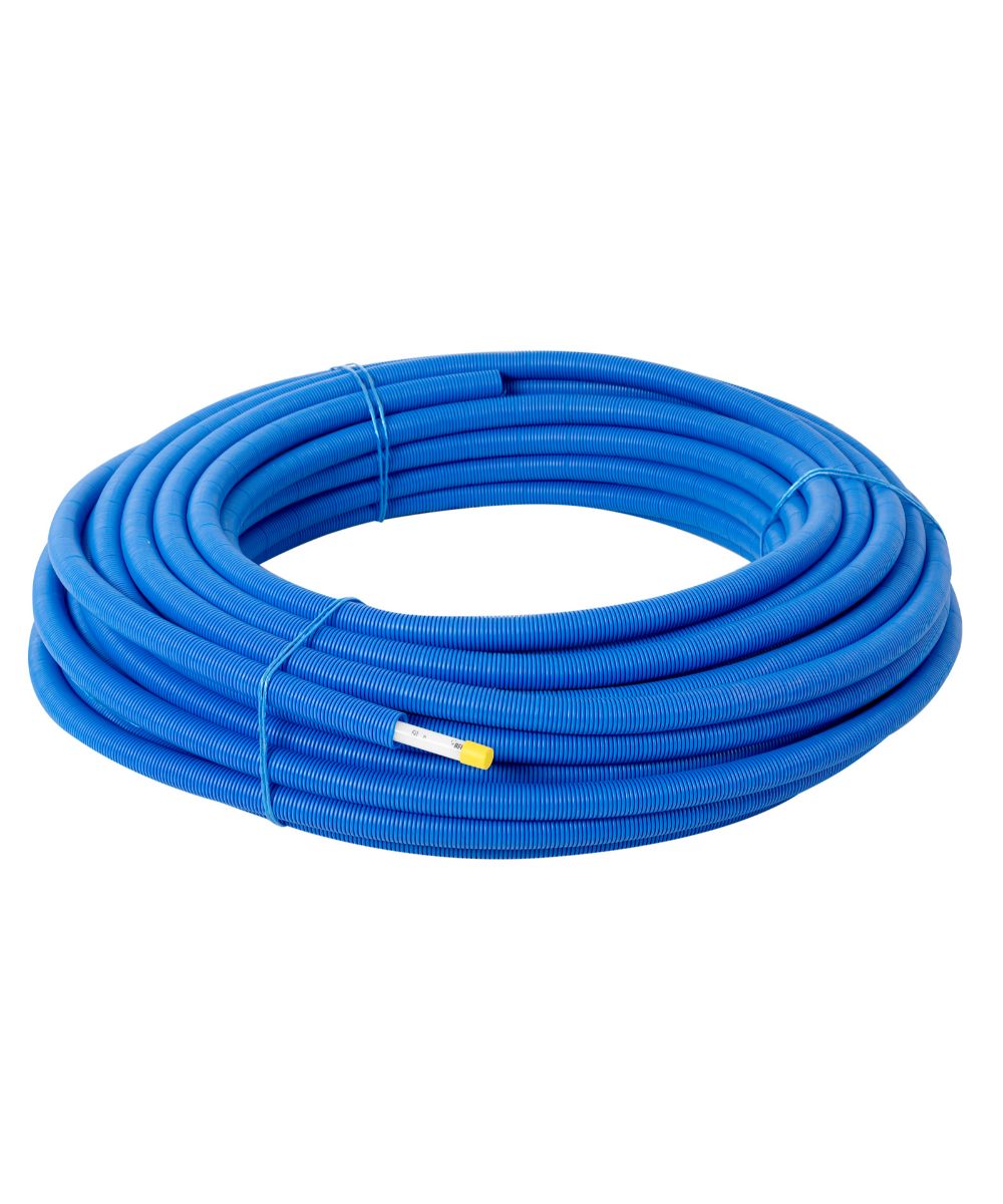 Valmiiksi sujutettu käyttövesiputki sinisessä suojaputkessa, 50 m.