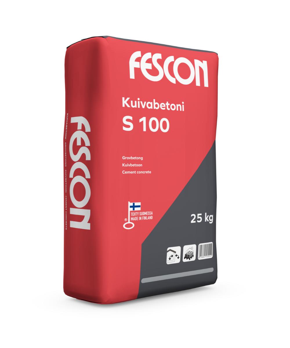 Fescon Kuivabetoni S 100 on sementtiperustainen kuivabetoni, joka soveltuu rakennusten yleisimpiin valutöihin. Maksimiraekoko on 10 mm.