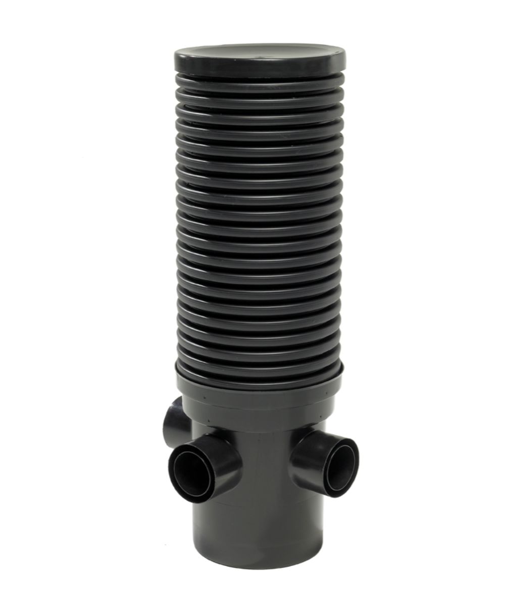 Salaojan tarkastuskaivo asennetaan salaojaputkilinjaan rakennuksen kulmiin ja pidempien vetojen välille. Toimitus sisältää PE-umpikannen, 315mm runkoputken ja sakkapesällisen pohjaelementin kolmella yhteellä, joista yksi on valmiiksi auki. Yhteet sopivat 110mm putkille. Kaivon kokonaiskorkeus on 1330mm.