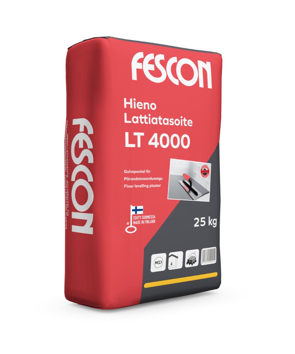Fescon Hieno Lattiatasoite LT 4000 on helposti tasoittuva, nopeasti kovettuva ja kuivuva sementtipohjainen lattiatasoite