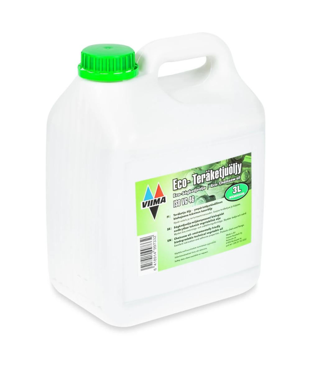 Viima Eco 3L teräketjuöljy on ympäristöystävällinen, biohajoava tekninen kasviöljy. Öljyssä on hyvät voitelu- ja tartuntaominaisuudet.