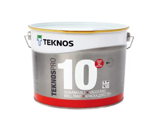 TEKNOSPRO 10 seinämaali soveltuu sisäseinien ja -kattojen maalaukseen esim. asuin- ja toimistohuoneissa. Maalia on helppo levittää ja se jättää tasaisen, miellyttävän näköisen, himmeän pinnan. Alustana voi olla betoni, rappaus, erilaiset rakennuslevyt, tasoite ja tiili, Lisäksi TEKNOSPRO 10 soveltuu vanhojen alkydi- ja dispersiomaalipintojen uudelleenmaalaukseen.
