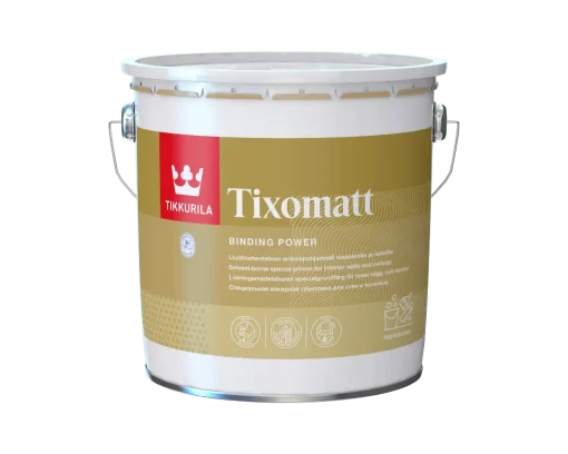 Tixomatt on hyytelömäinen, peittävä ja eristävä sisäkattojen alkydipohjamaali. Tuote soveltuu uusille ja ennen maalatuille sisäkattopinnoille. Tixomatt on sitova ja eristävä pohjamaali rappaus-, tasoite-, lastulevy-, puukuitulevy- ja puupinnoille sisällä. Se soveltuu etenkin ruiskutasoitekatoille ja estää läpilyöntejä.