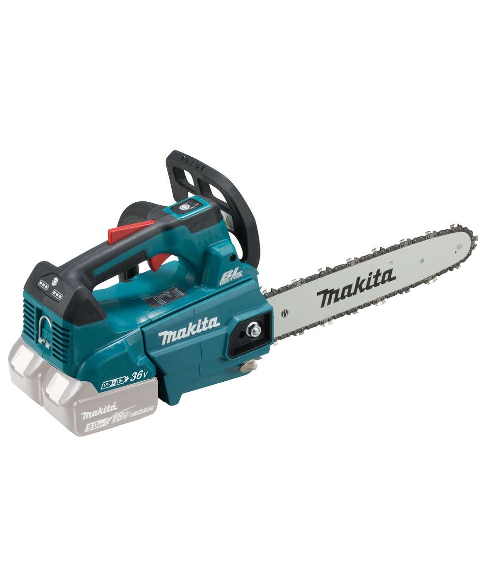 Makita akkuketjusaha DUC306Z on tehokas saha hiiliharjattomalla moottorilla ja 20 m/s ketjunopeudella. Yläpuolisella kahvalla varustettu saha on erinomainen vaativiin puutöihin. Paksujen oksien katkaisuun on käytettävissä hetkellinen lisäteho. Näppärä saha sopii rakennuksille ja puunhoitoon, varustettu 10″ laipalla. Yläkahvallinen ketjusaha on viheralan ammattilaisen valinta. Puiden hoito- ja muotoon leikkaus ovat haastavia kun työskennellään nostokorissa tai jopa köysien varassa. Makitan yläkahvallinen DUC306 tarjoaa turvallisen kokonaisuuden tehosta tai kapasiteetista tinkimättä: esim. katkaisuja 50×50 oksaan yli 300 kpl. Runkoversio ilman akkuja ja laturia.