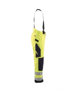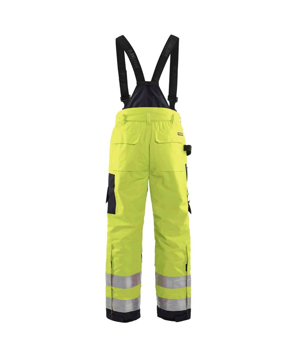 Vuorelliset talvihousut kahdella eri materiaalilla – kestävä ja vettähylkivä 1900 nailon -materiaali sekä hengittävä, tuulen- ja vedenpitävä 1977 materiaali teipatuilla saumoilla. Fleecevuoratut etutaskut, palkeelliset takataskut, reisitaskut läpällä ja mittatasku. CORDURA® -vahvistetut polvisuojataskut, jotka voidaan sulkea alareunasta tarranauhalla niin, ettei lumi pääse polvisuojataskuihin sisään. Lumilukot lahkeensuissa ja irrotettavat henkselit. Korotettu selkäosa. Huom! Irralliset riipputaskut 2183 myydään erikseen. Sertifioitu EN ISO 20471 luokka 2 ja EN342.