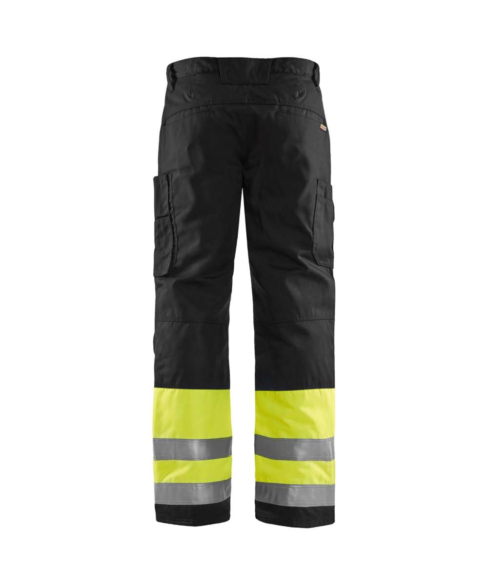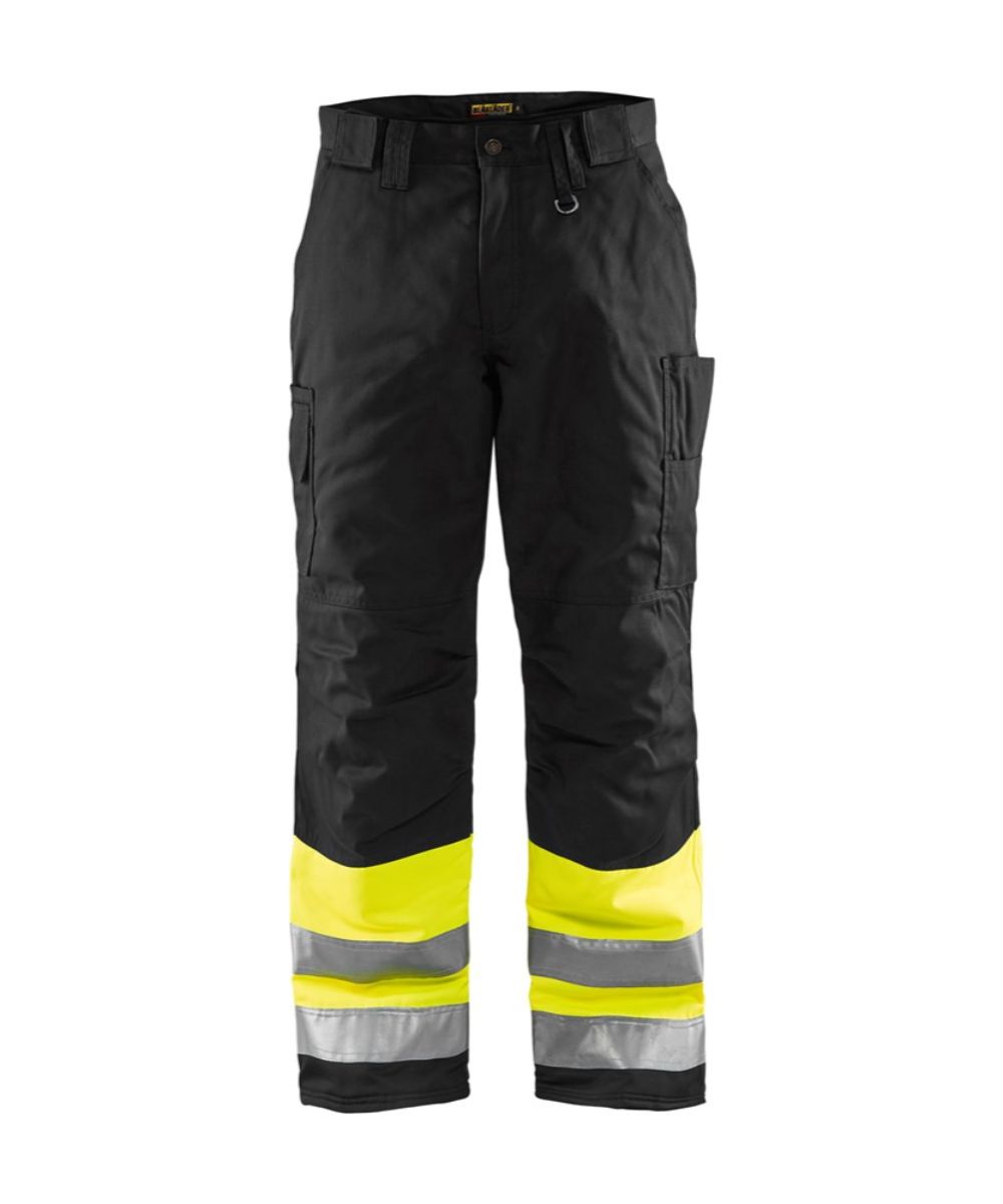 Mukavat, tikkivuorelliset Highvis -talvihousut kestävästä, likaa- ja vettähylkivästä materiaalista. Etutaskut, palkeelliset takataskut ja tilavat reisitaskut, joissa hyvin tilaa asiakirjoille ja kynille. Oikea reisitasku on ommeltu hiukan vinoon, jotta sen käyttäminen olisi helpompaa. Muotoiltu polviosa ja polvisuojataskut sisäpuolella. Sertifioitu EN ISO 20471 luokka 1 (Näkyvä varoitusvaatetus ammattikäyttöön) ja EN 342 (Suojavaatetus kylmyyttä vastaan).