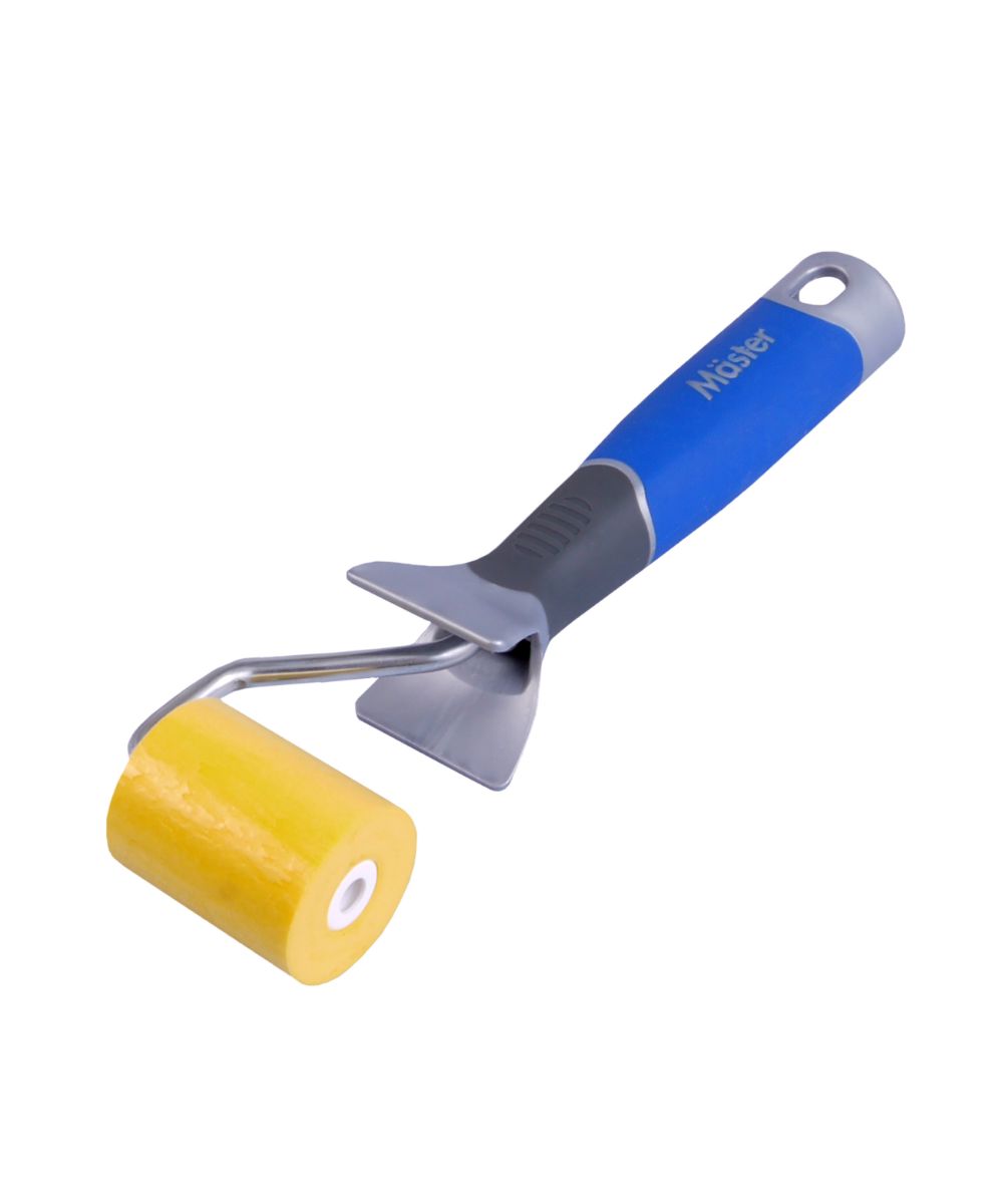Tehokas työkalu tapettisaumojen kiinnipuristamiseen ja yhteen tiivistämiseen. Pehmeä rulla on hellävarainen tapettipinnalle. Jatkovarteen sopiva kahva.