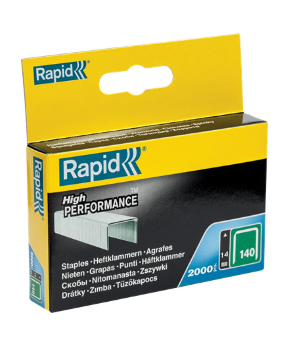 Rapid 140/14 galvanoitu niitti. Suositellaan hauraiden materiaalien, kuten paperin, pahvin, puukuitulevyjen sekä muovikalvojen kiinnitykseen. Sinkilän leveä selkä pitää materiaalin tukevasti paikallaan.